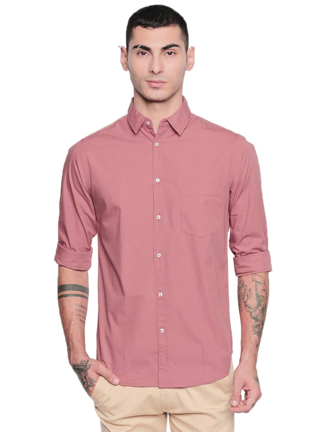 Dennis Lingo Men's Solid Dusty Pink Casual Shirt