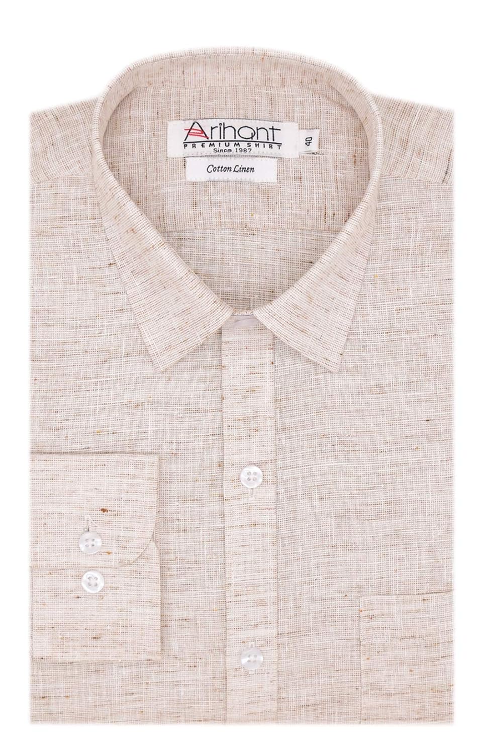 Arihant Men's Plain Cotton Linen Full Sleeves Regular Fit Formal Shirt