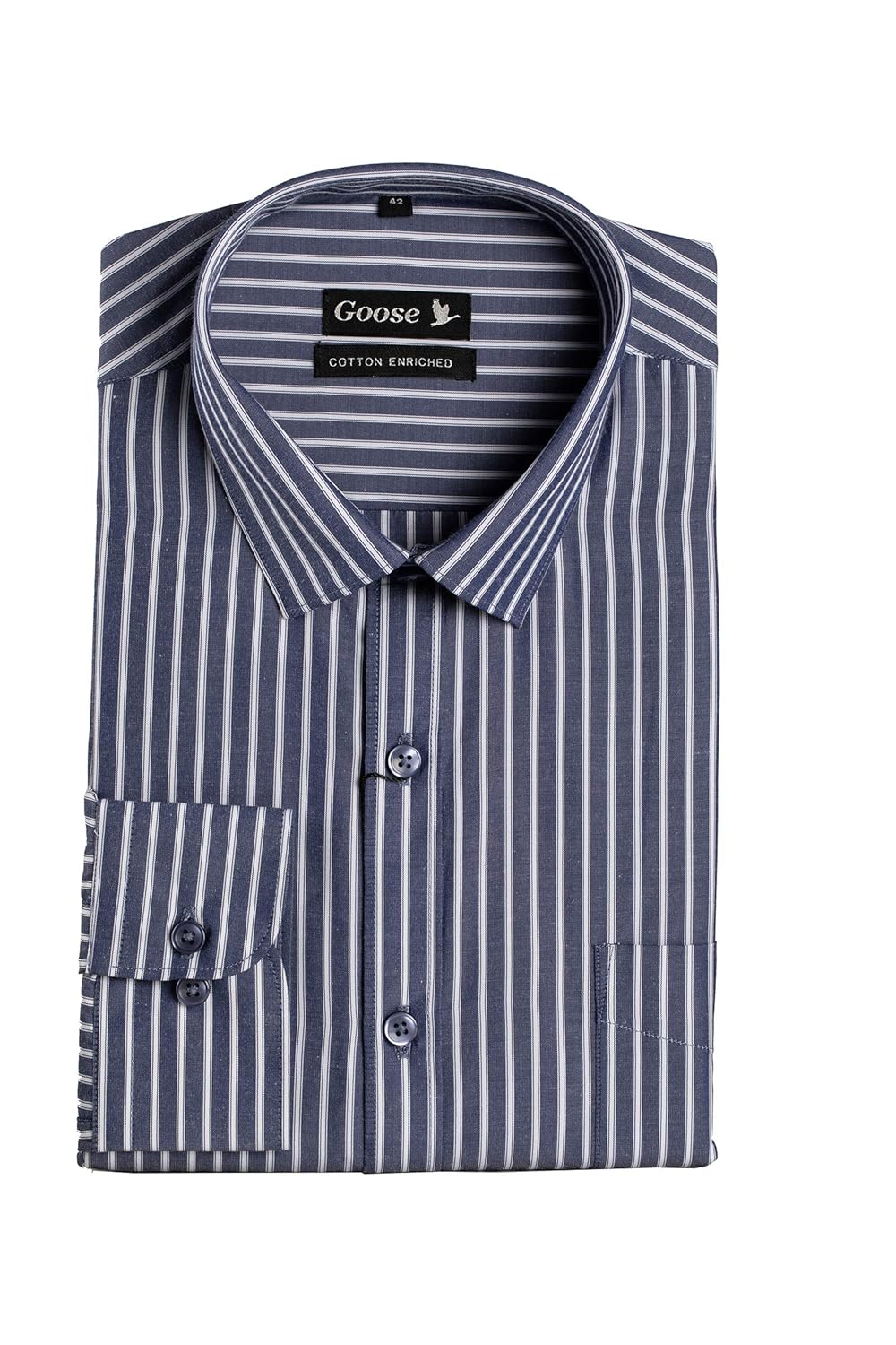 Global Rang Men's Denim Striped Snap Button Casual Shirt