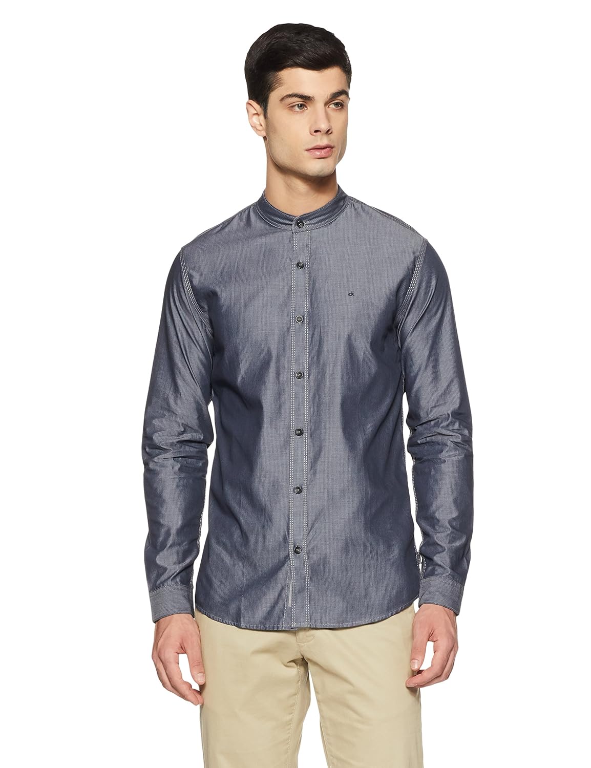 Calvin Klein Men's Solid Regular Fit Cotton Casual Shirt