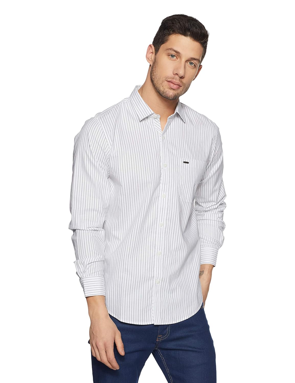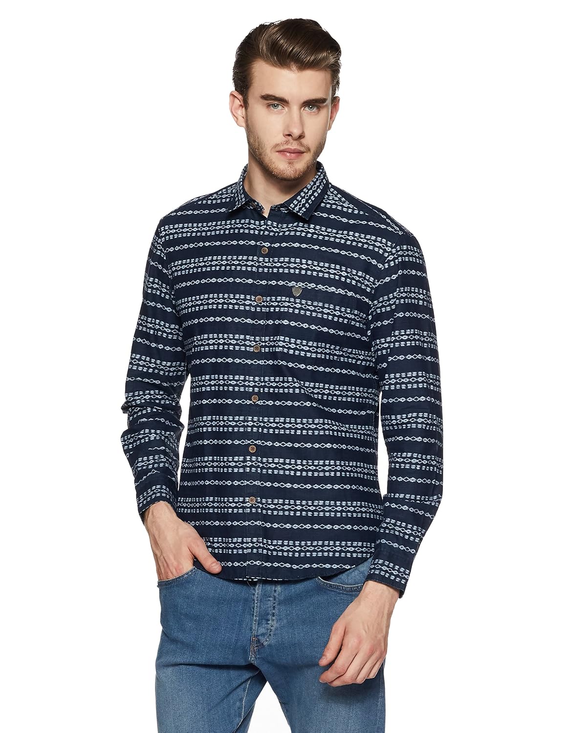 John Players Men's Printed Slim Fit Cotton Casual Shirt