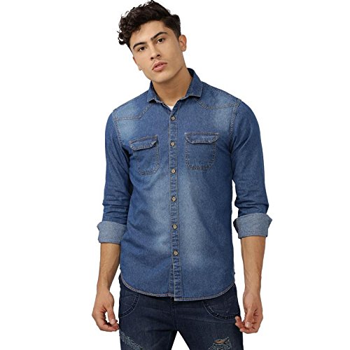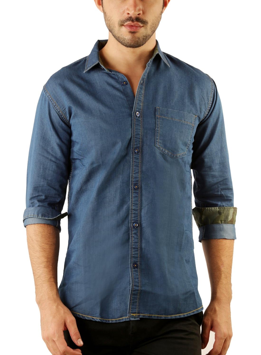 BLACK TAXI Men's Denim Full Sleeve Casual Shirt Dark Blue Color (BLK-00028)