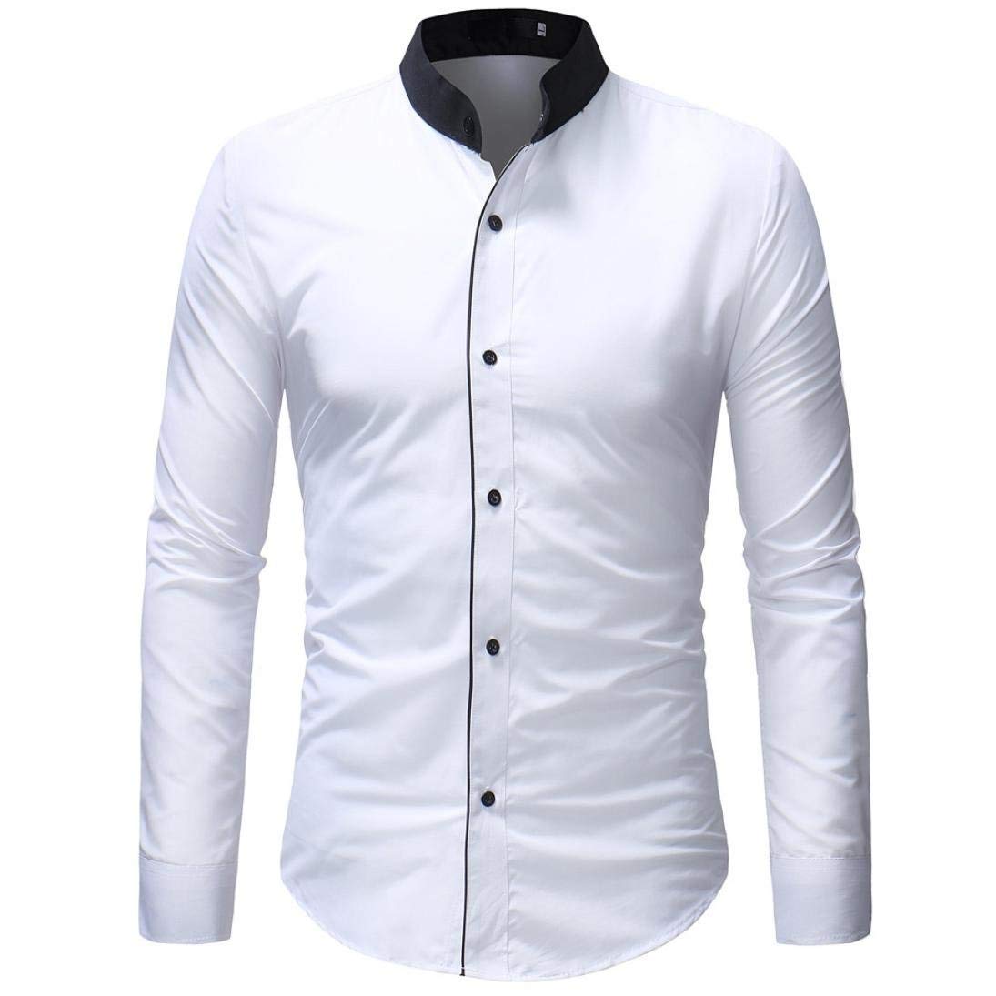IndoPrimo Men's Cotton Casual Chinese Collar Full Sleeves Shirt White