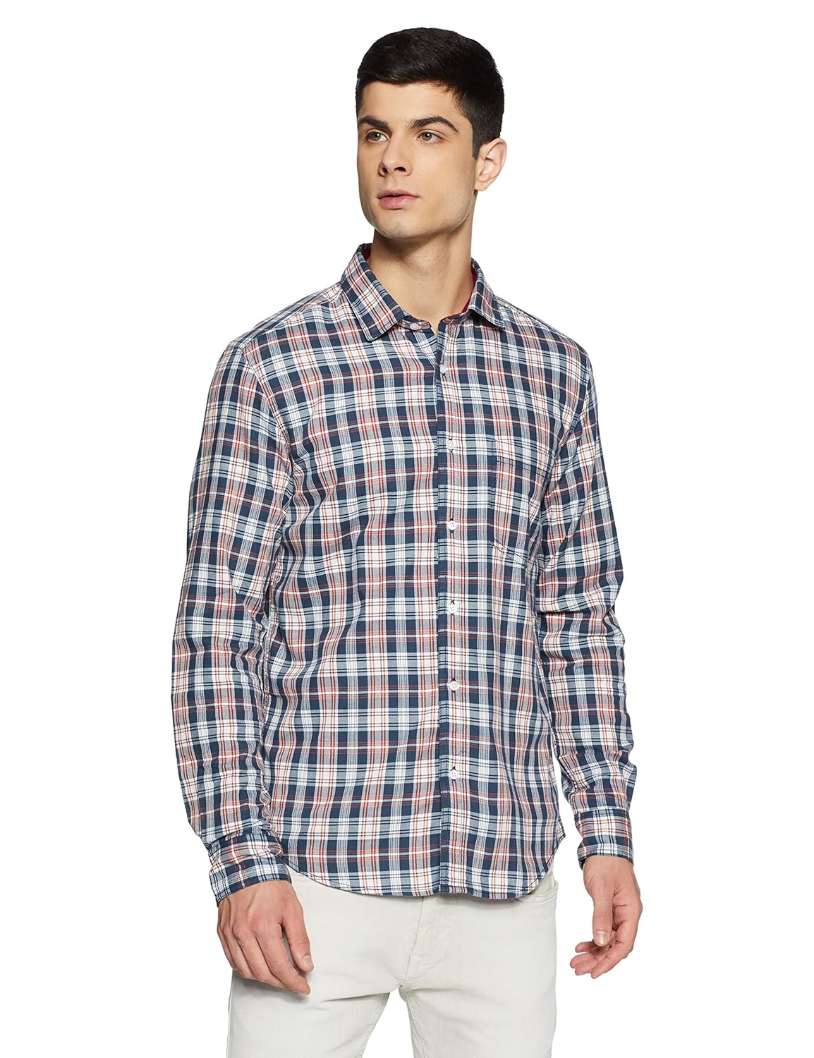 Amazon Brand - Symbol Men's Checkered Regular Fit Cotton Formal Shirt