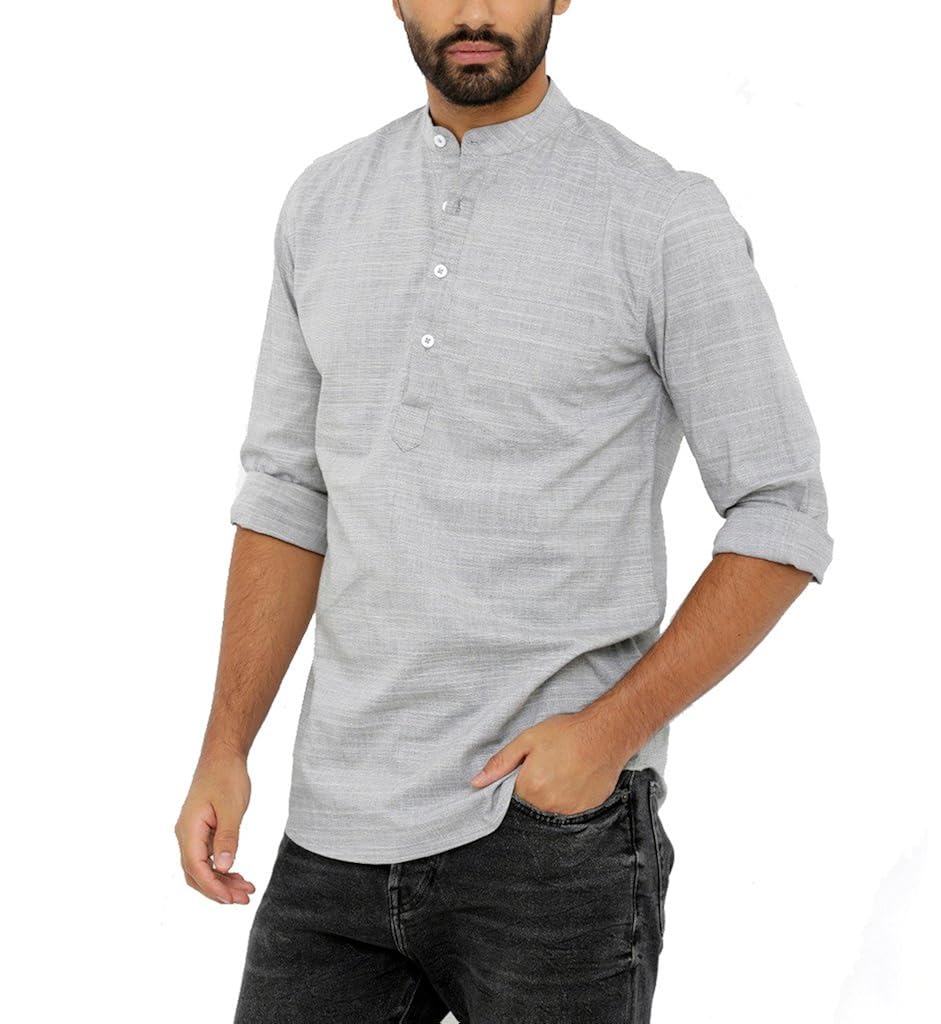 Nick & Jess Mens Grey Lycra Three Button Kurta Cotton Shirt