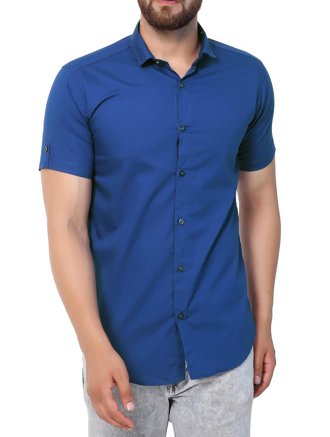 U-TURN Men's Cotton Solid Half Sleeve Shirt