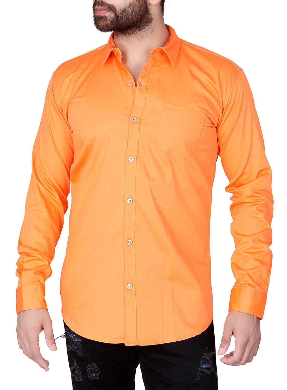JUGEND Orange Plain/Solid Cotton Slim fit Casual Shirts for Men