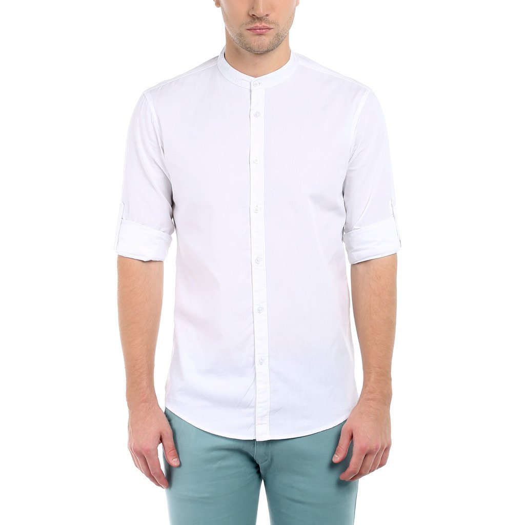 Dennis Lingo Men's Cotton Casual Full Sleeves Slim fit White Shirt