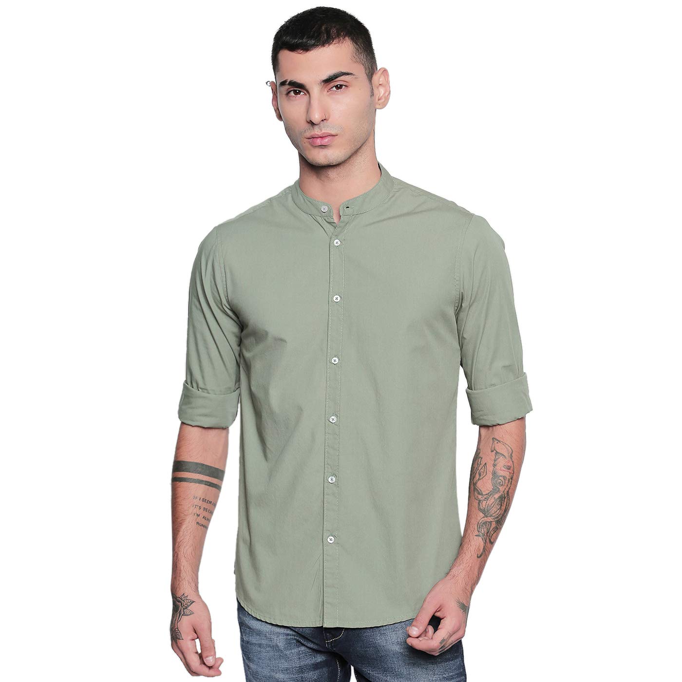Dennis Lingo Men's Solid Chinese Collar Dusty Green Casual Shirt