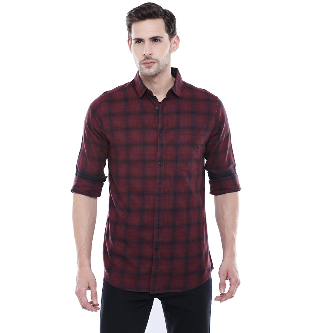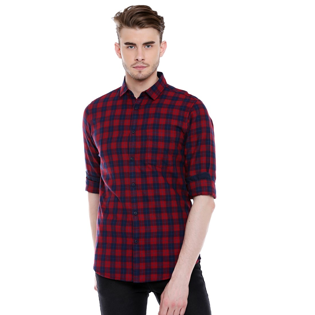 Dennis Lingo Men's Checkered Maroon Slim Fit Casual Shirt