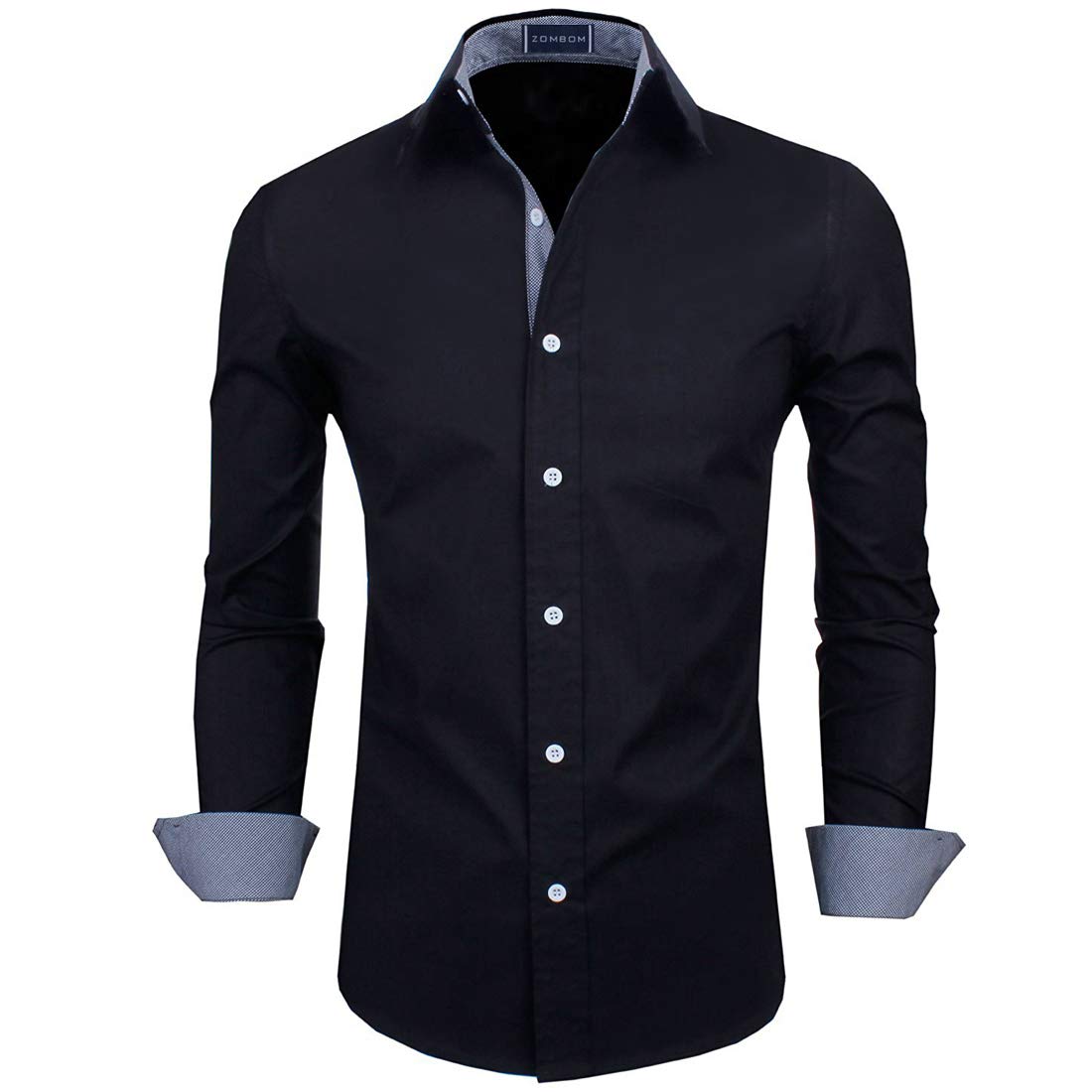 IndoPrimo Men's Cotton Casual Shirt for Men Full Sleeves Black