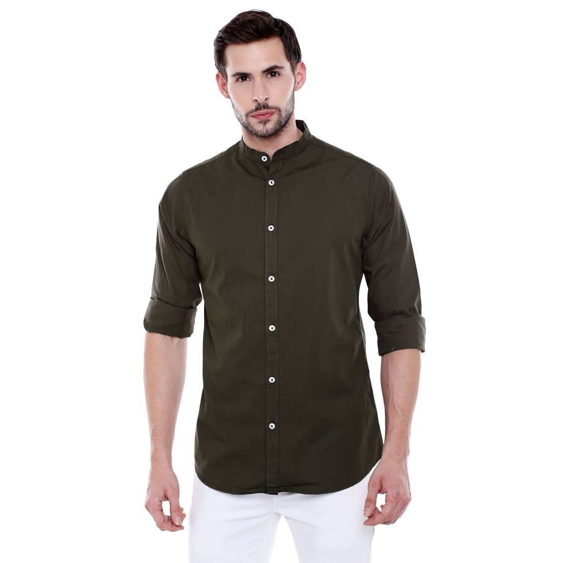 Dennis Lingo Men's Solid Chinese Collar Green Casual Shirt