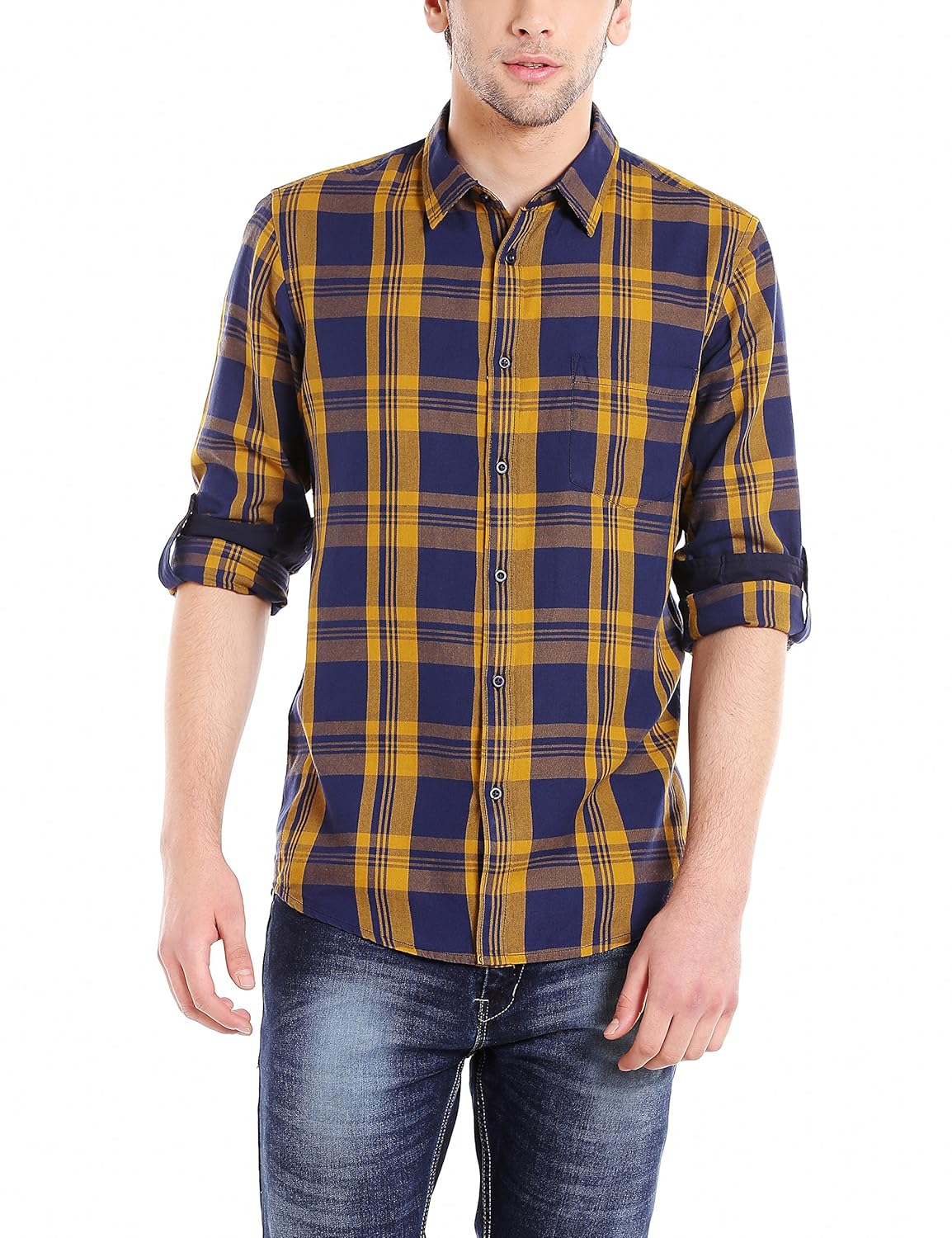 Dennis Lingo Men's Cotton Checkered Casual Shirt
