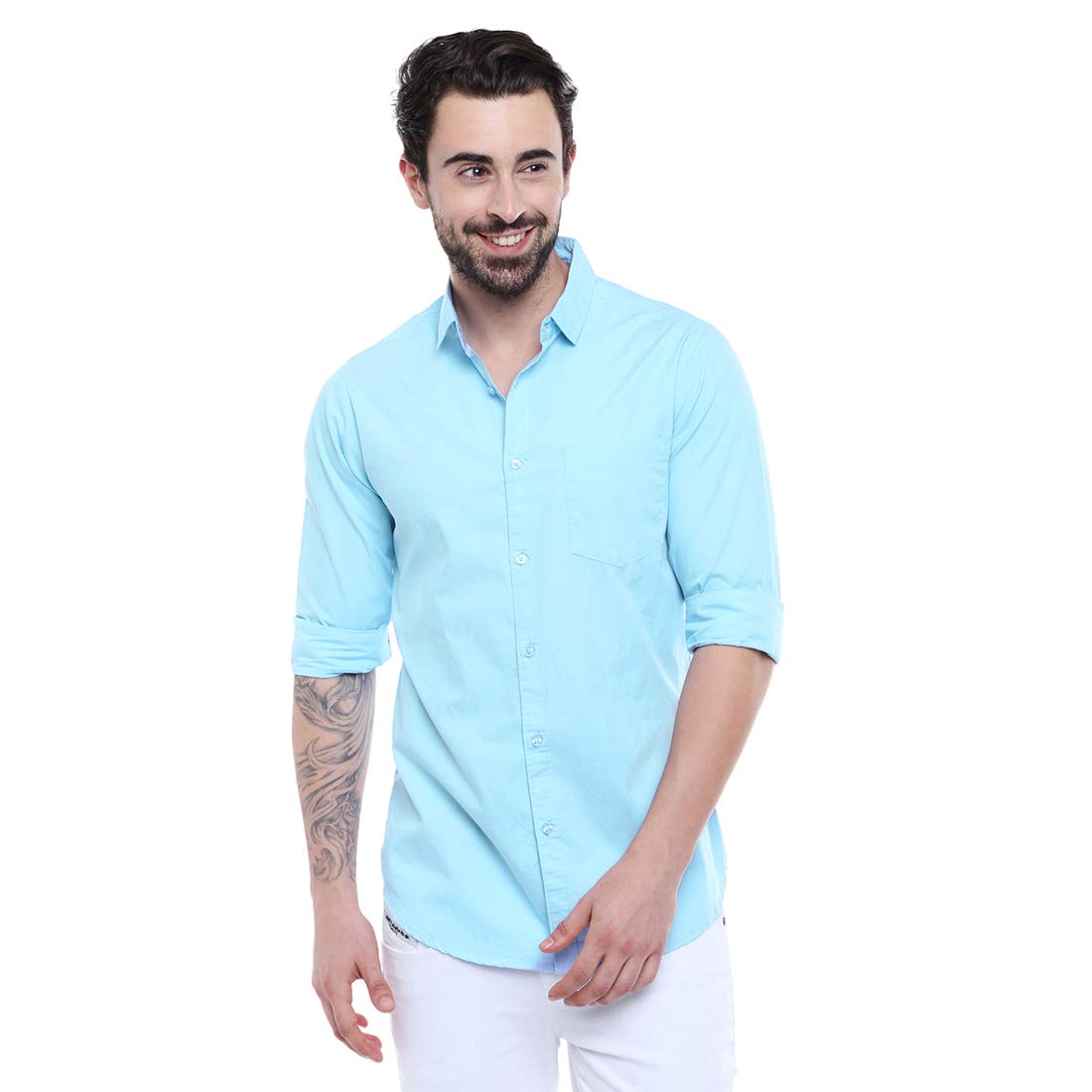 Dennis Lingo Men's Cotton Turquoise Blue Solid Casual Shirt