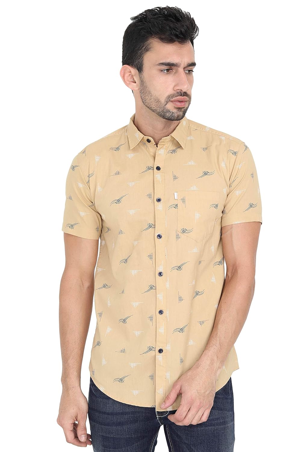 Asian & Fitch Men Casual Slim Fit Cotton Half Sleeves Printed Shirt Navy Bl...