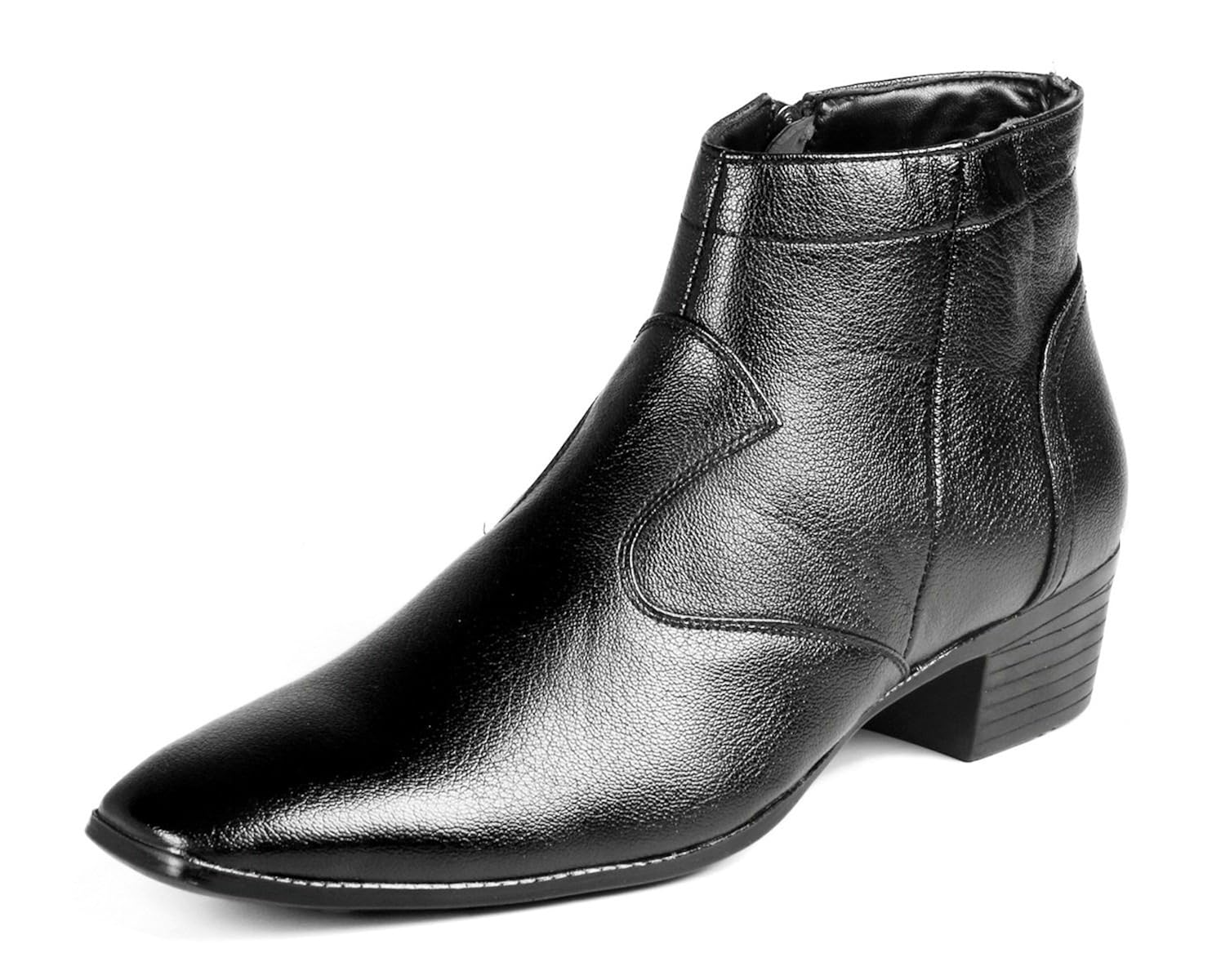 BXXY Men's Black Faux Leather Height Increasing Boots