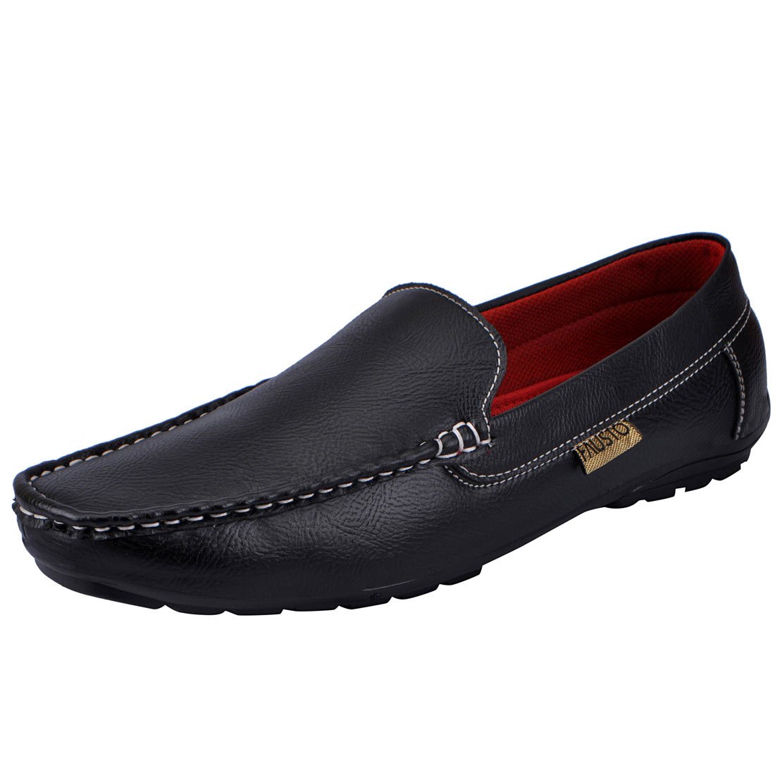 BUCADIA Men's Black Leather Loafer & Moccasins Driving Shoes Mojari for Men