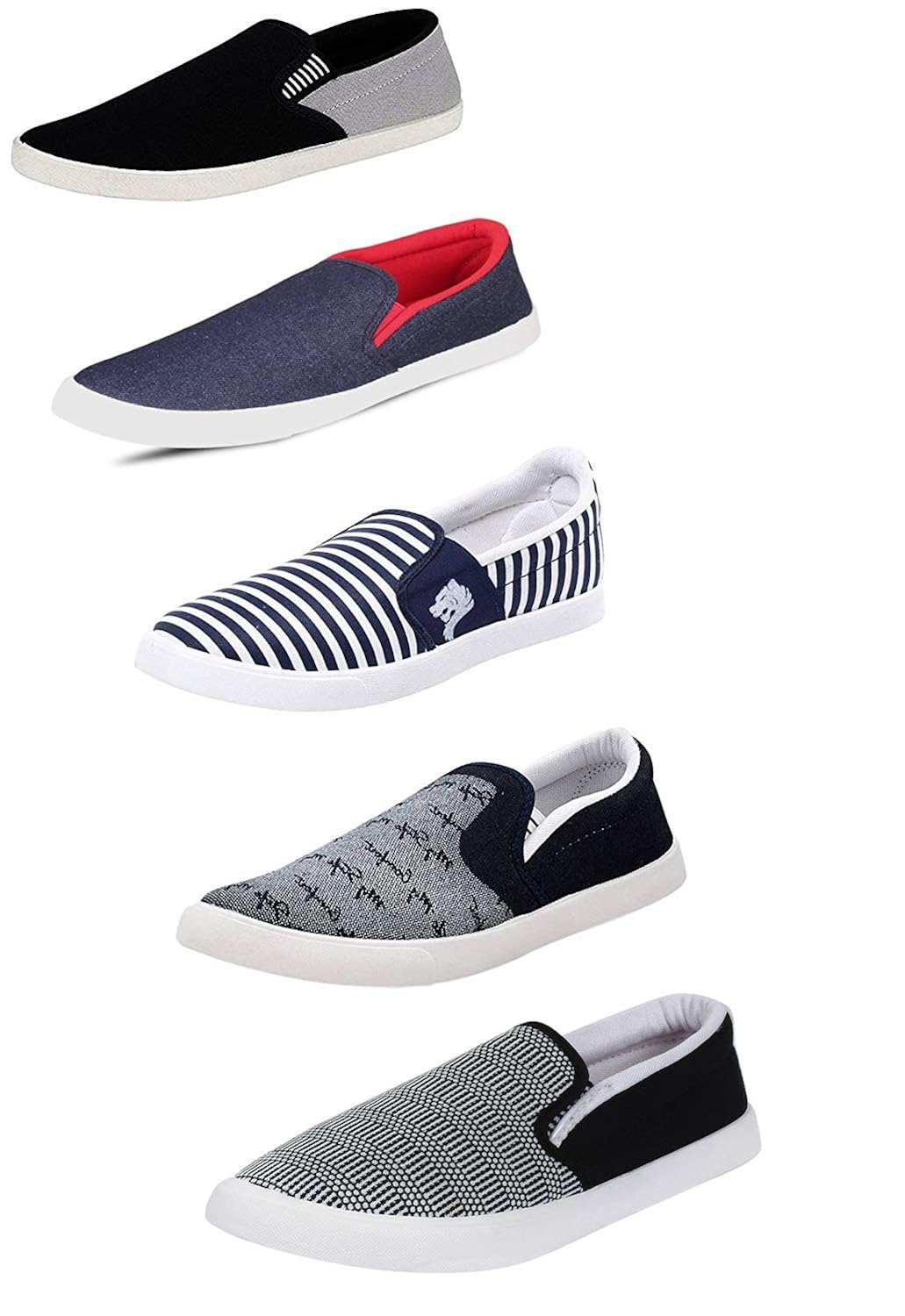 SCATCHITE Men's Canvas Black Loafers (Pack of 5)
