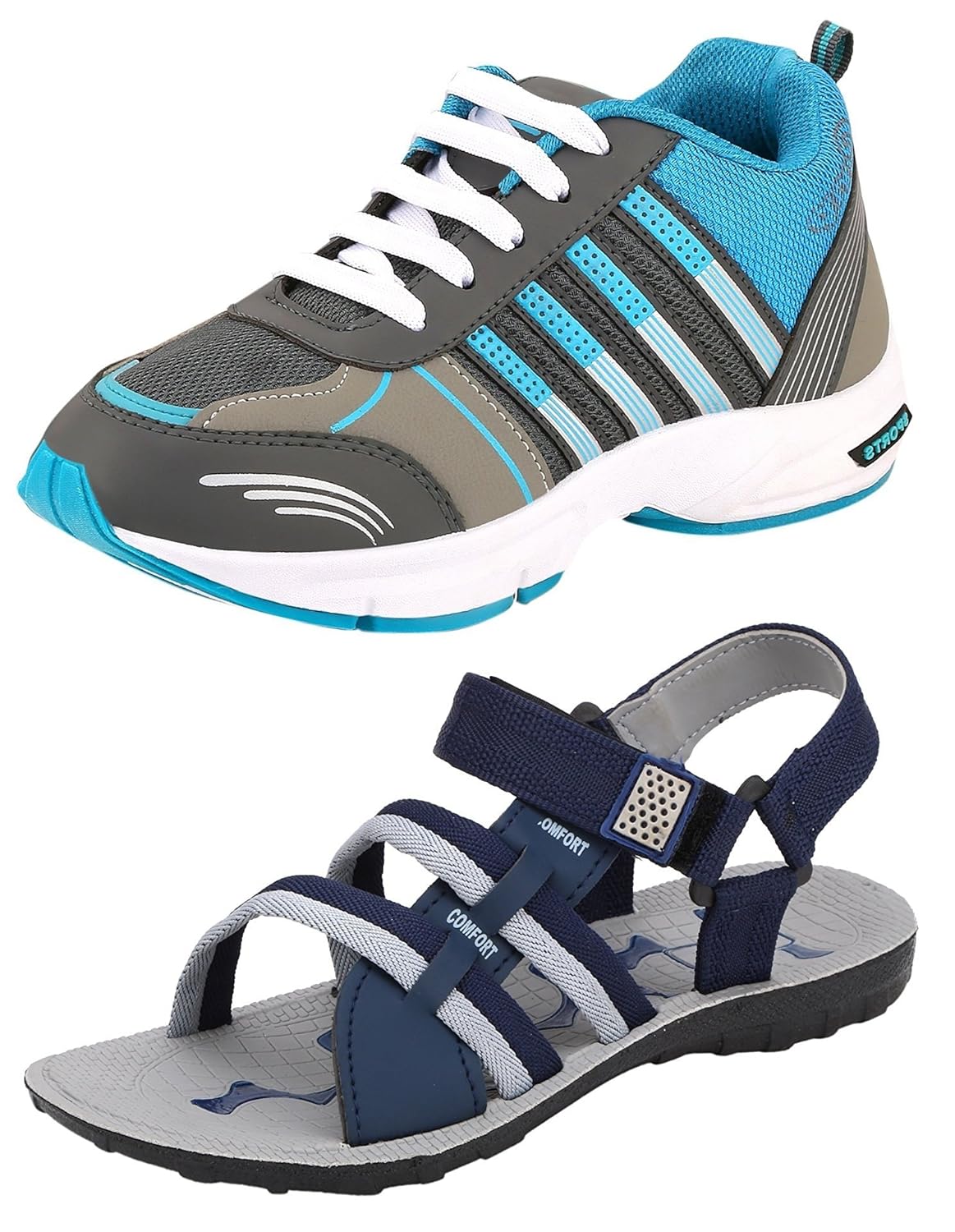 Chevit Men's Combo Pack of 2 Running Shoes with Floater Sandals (Sport Shoe...