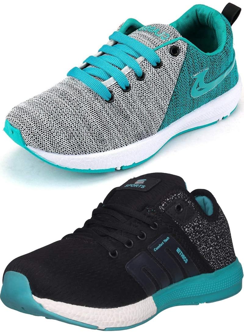 Ethics Best Combo of 2 Sea Green Black Running Sports Shoes for Men