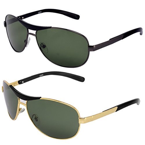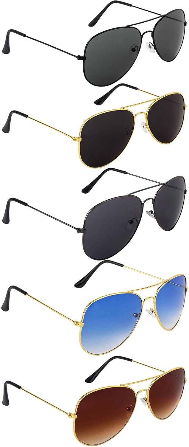 NuVew Combo Pack of 5 Aviator Unisex Sunglasses With Pouch (Multicolor | Me...