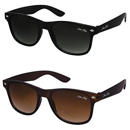 Silver Kartz Combo of 2 Wayfarer Unisex Sunglasses(Wy-001-005|50|Black, Bro...