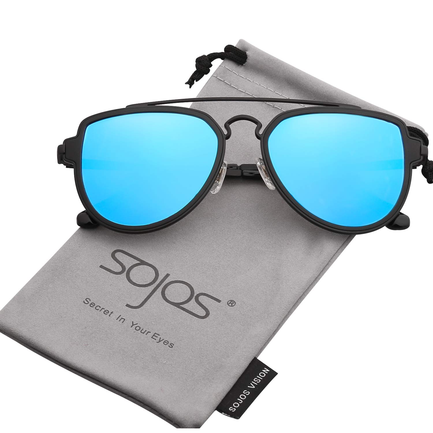 SOJOS Fashion Aviator Unisex Sunglasses Flat Mirrored Lens Double Bridge SJ...