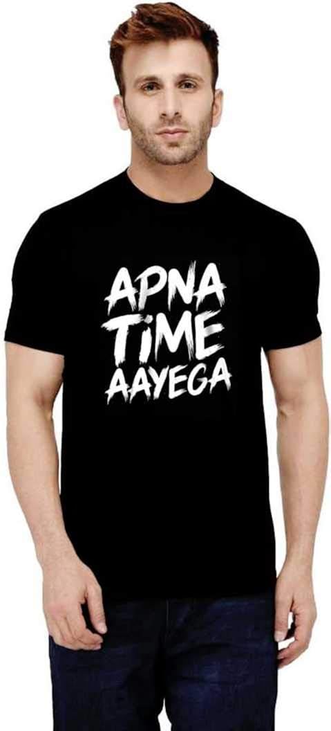 Parallel Times Apna Time Aayega Cotton Round-Neck Black Printed T-Shirt