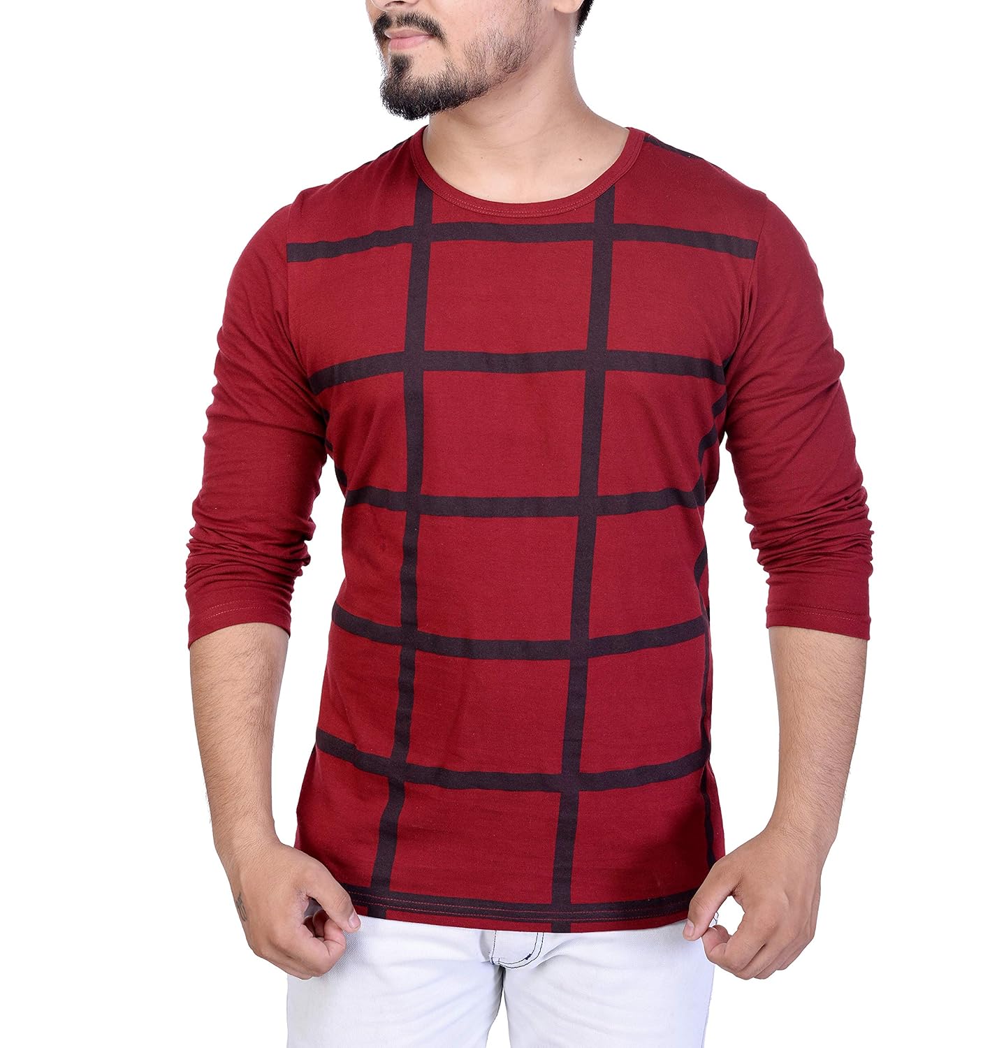Weft Men's Cotton Printed Round Neck Full Sleeve Tshirt RED
