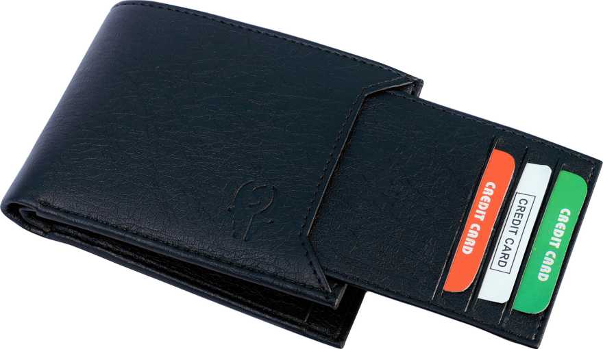 Men Black Artificial Leather Wallet (7 Card Slots)