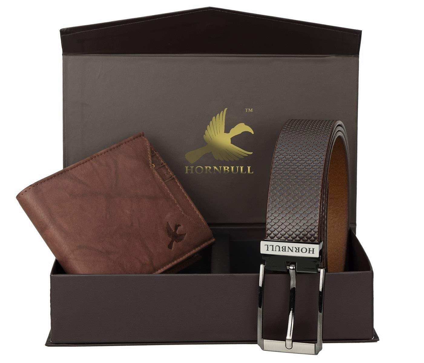 Hornbull Men's Brown Wallet and Belt Combo BW6995