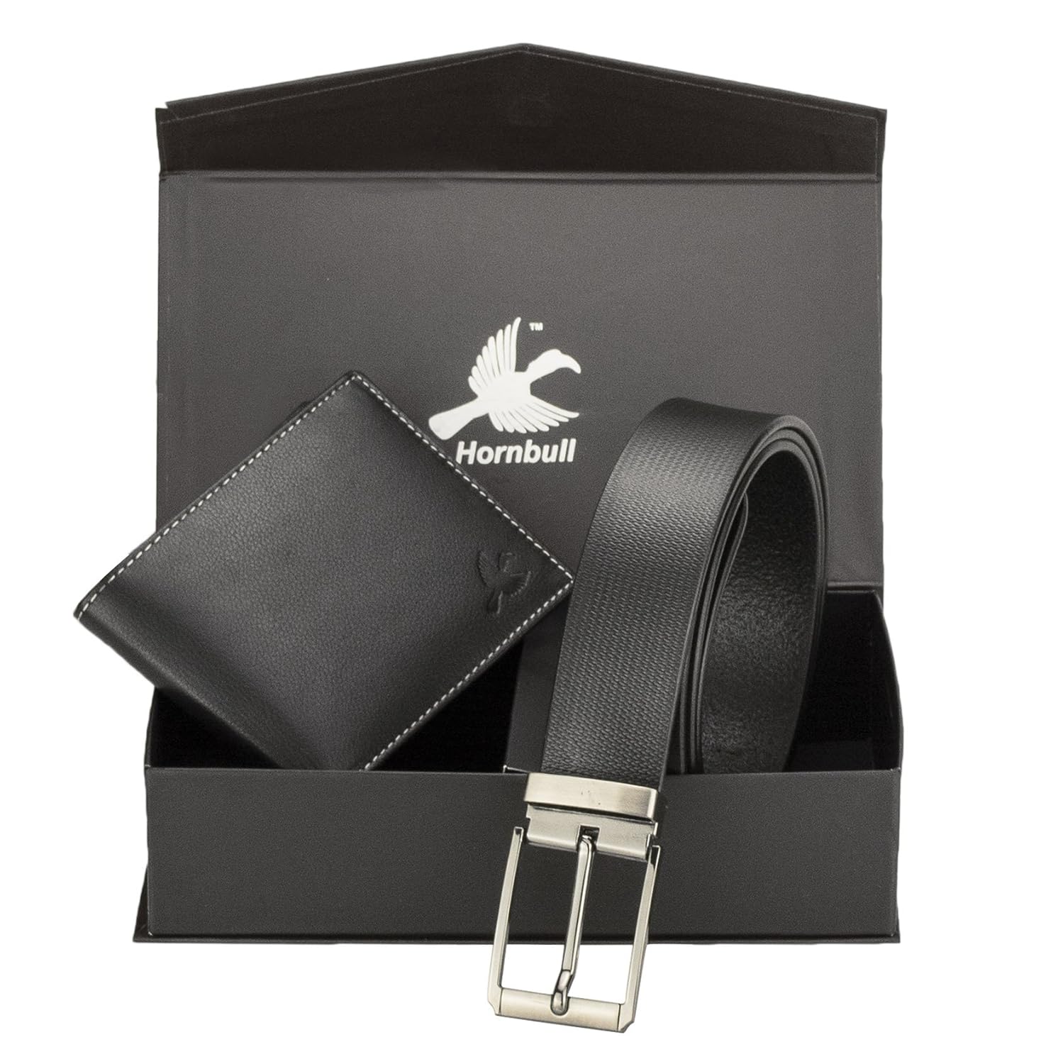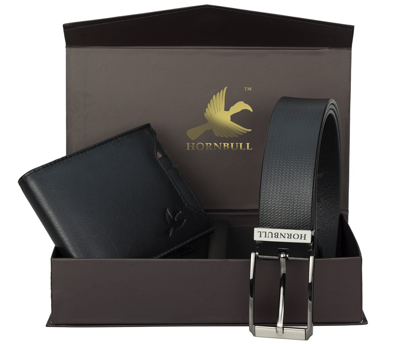 Hornbull Men's Black Wallet and Belt Combo
