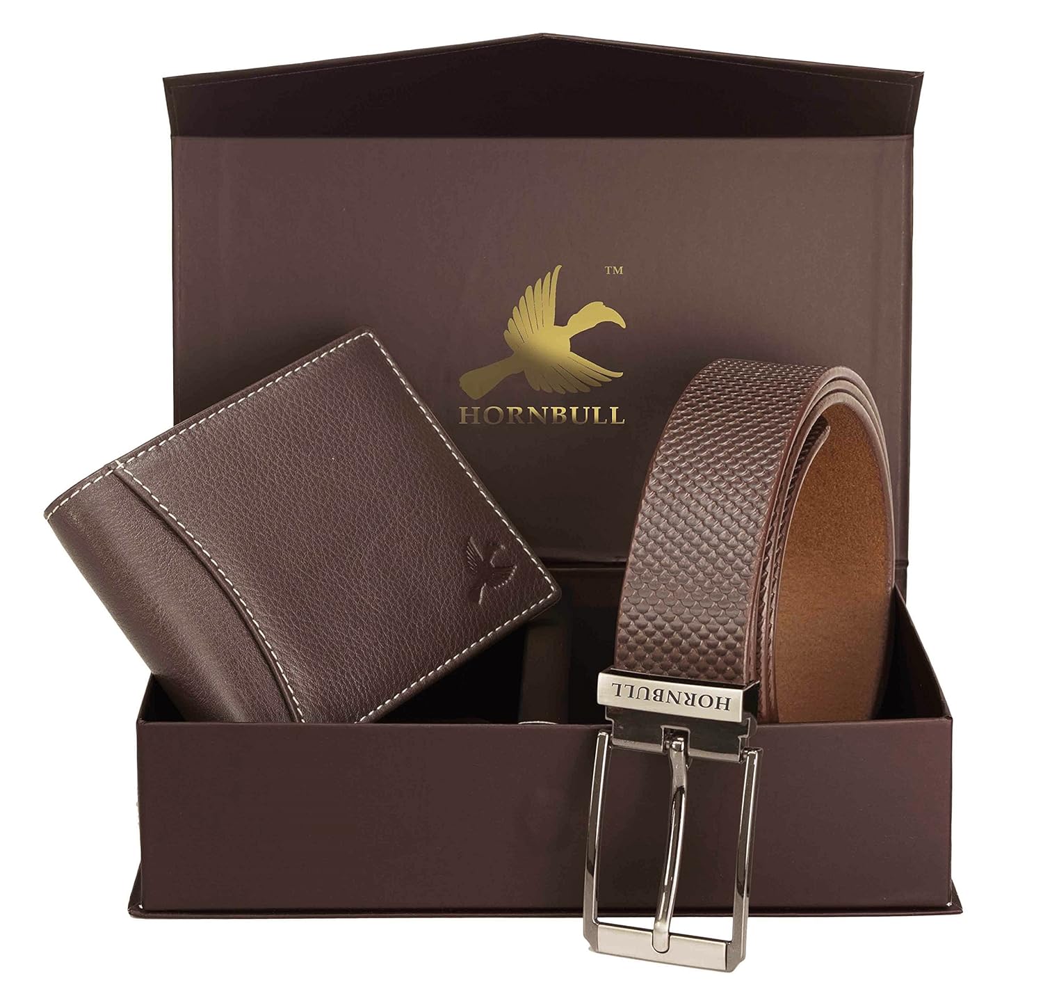 HORNBULL Men's Leather Wallet and Belt Combo(BW4595_Brown)