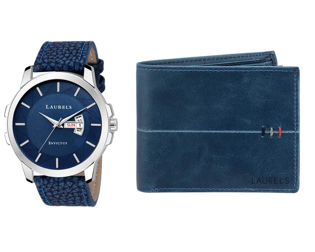 Laurels Blue Men's Wallet & Watch- Combo Pack (CP-INC-603-HRNT-II-0306)