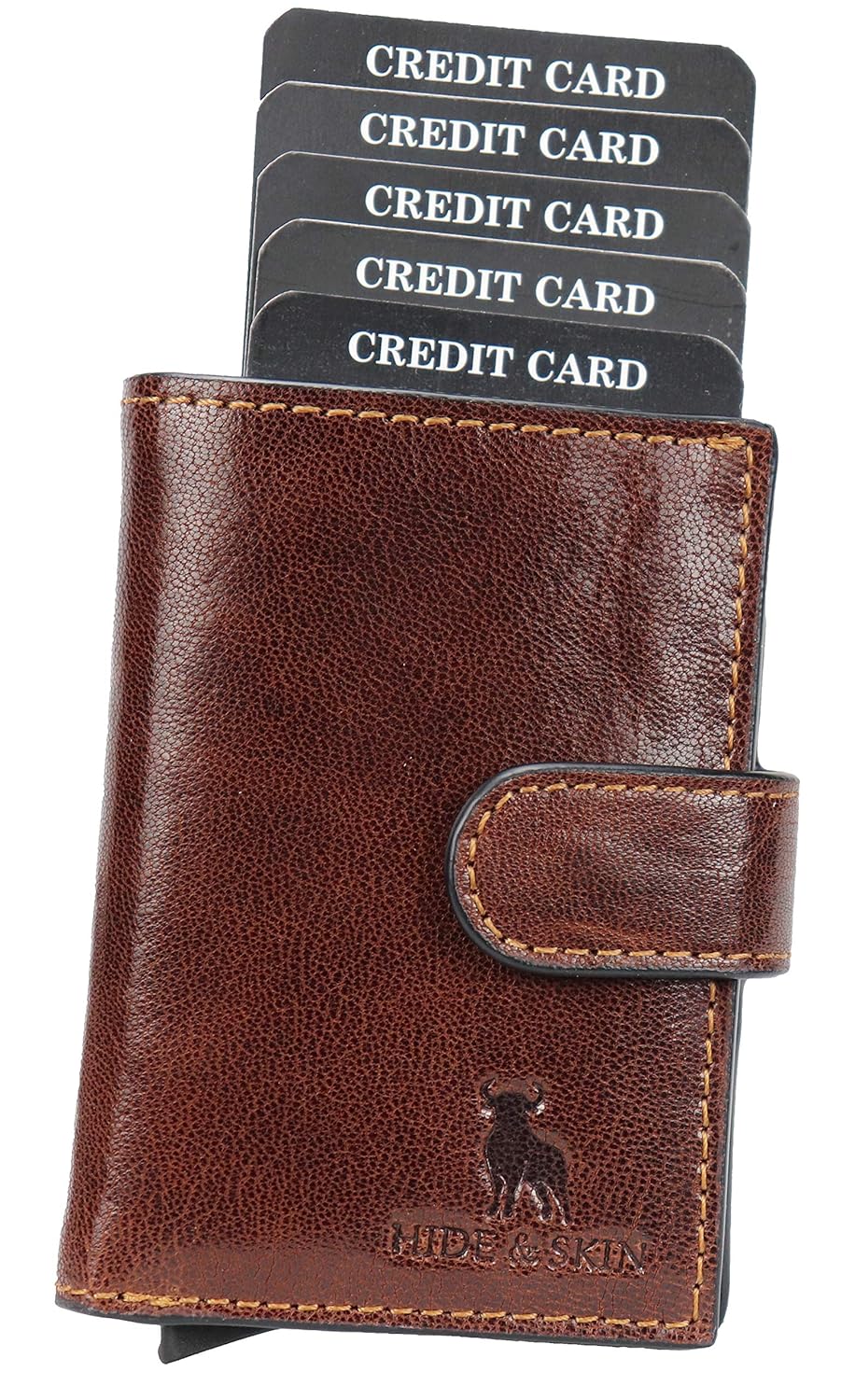 HIDE & SKIN Unisex Leather RFID Blocking Card Holder (Brandy)
