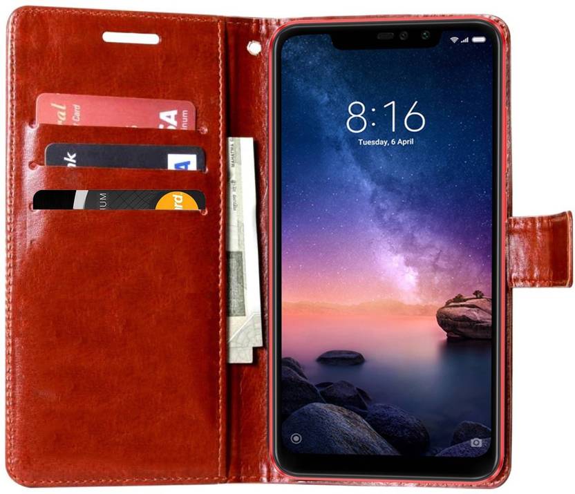 Spicesun Flip Cover for Mi Redmi Note 6 Pro (Brown)