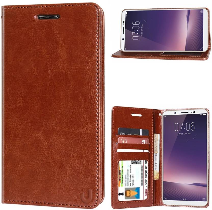 Unistuff Back Cover for VIVO V7 Plus (Executive Brown, 1 ID Card Slot, 1 C...