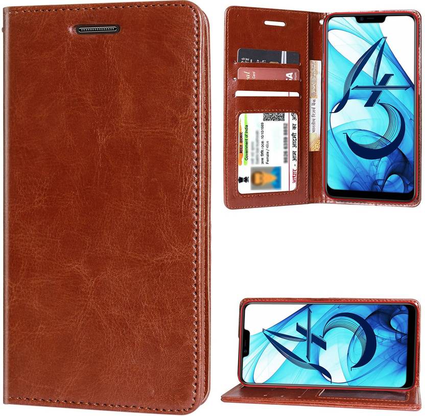 Unistuff Flip Cover for Oppo A5 (Executive Brown, 1 ID Card Slot, 1 Cash S...