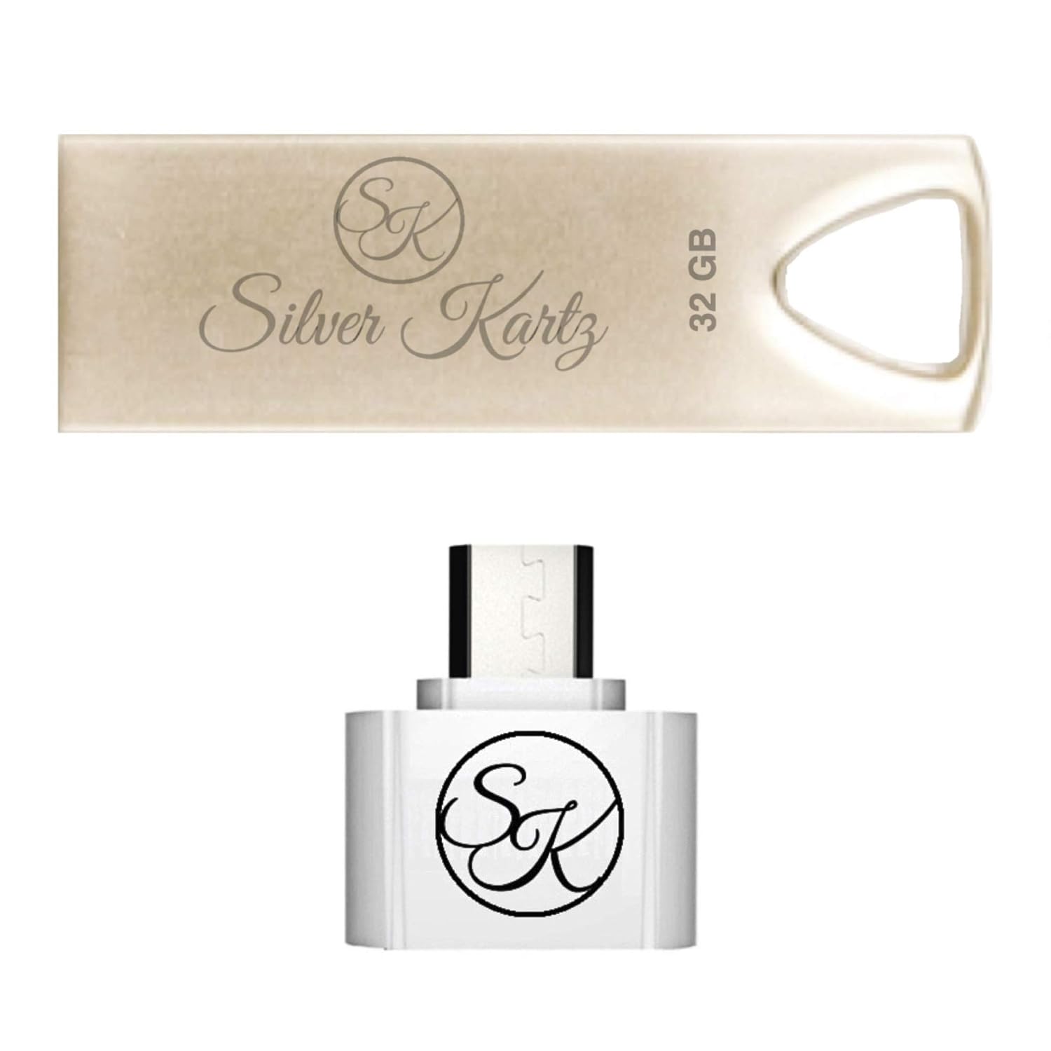 Silver Kartz Combo Pack of 32GB USB 2.0 Fast Pen Drive with OTG Adapter