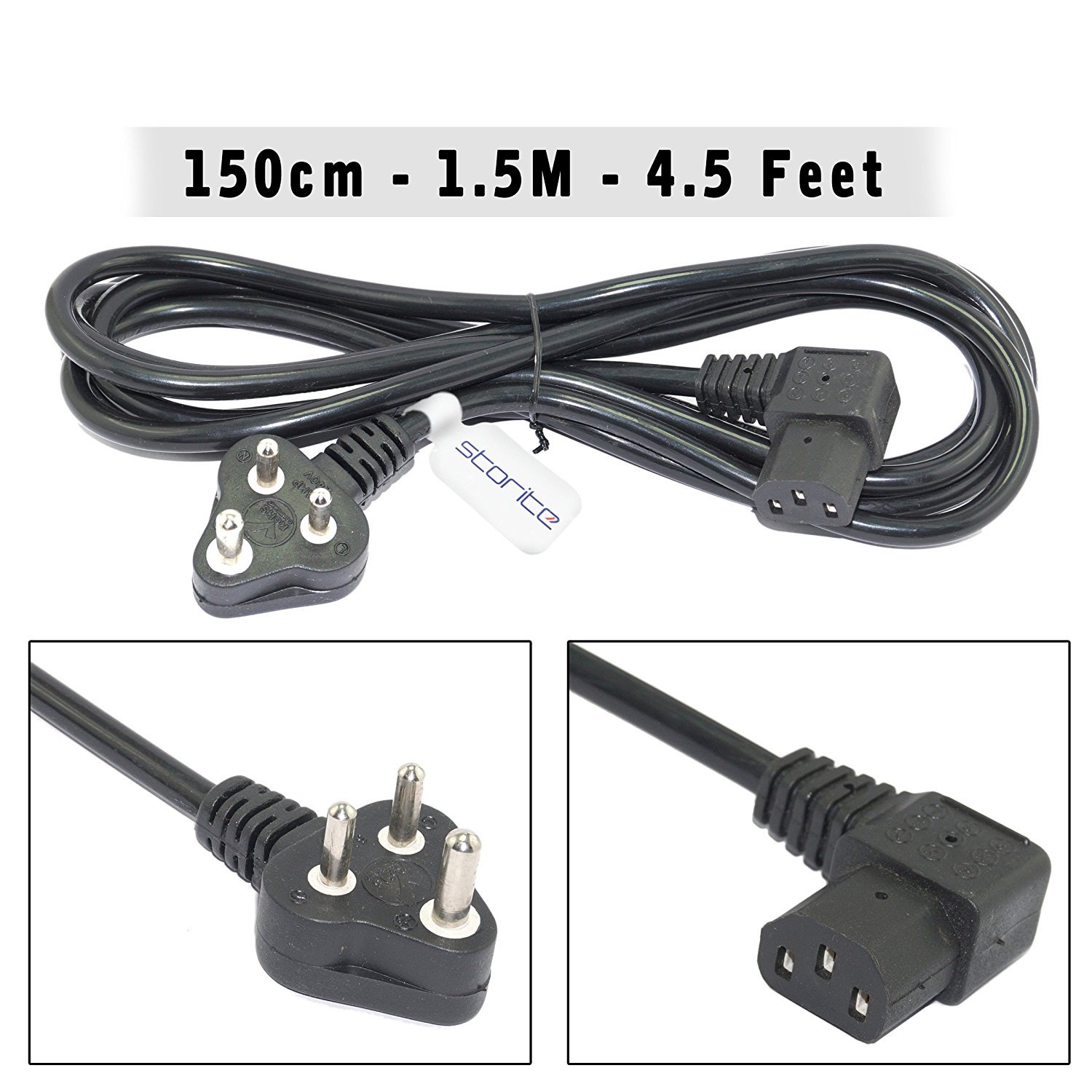 Storite (150cm - 1.5M - 4.5 Feet) L Shape IEC Mains Power Cable India Plug ...