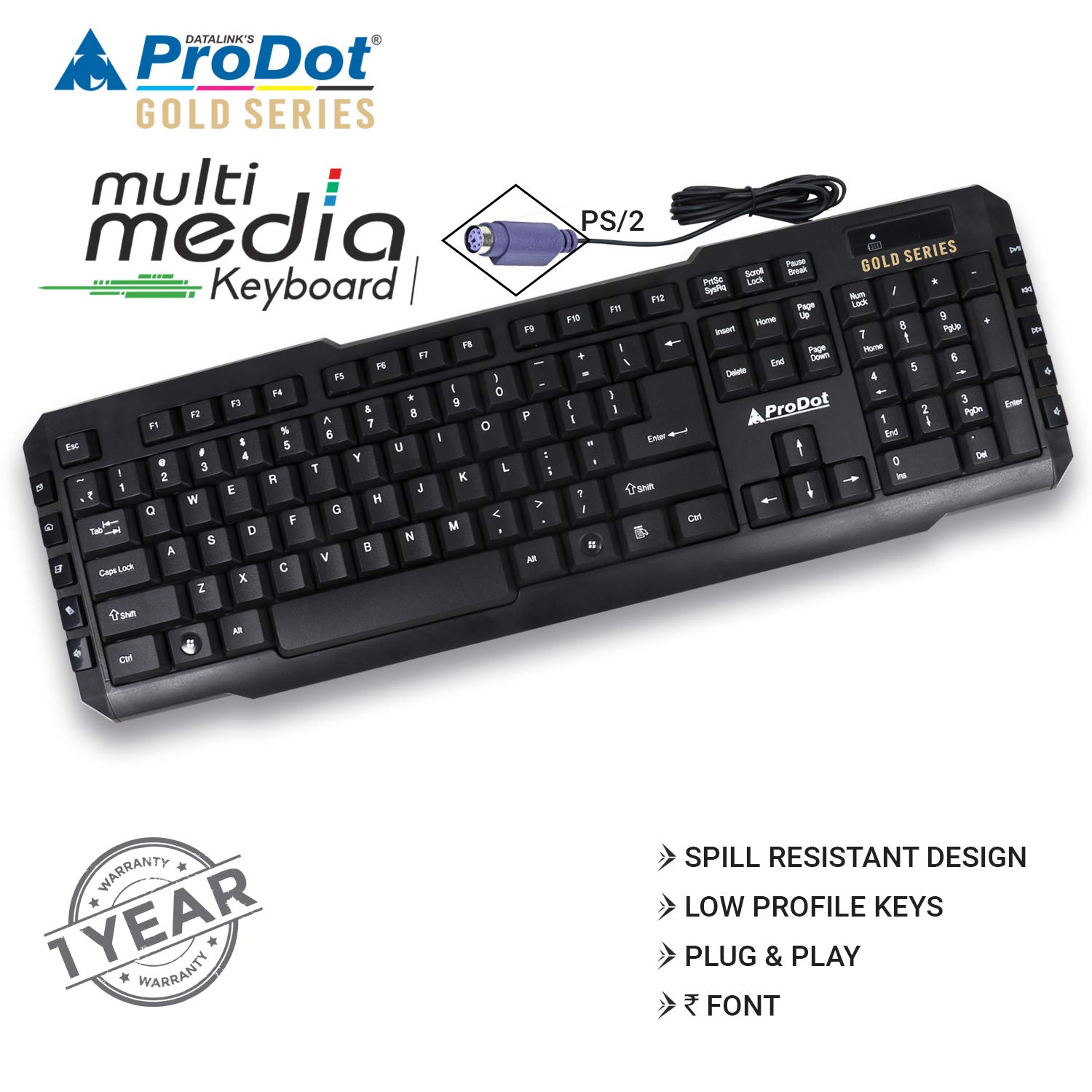 ProDot (Gold Series) KB-107m PS/2 Multimedia Keyboard (Color: Solid Black)