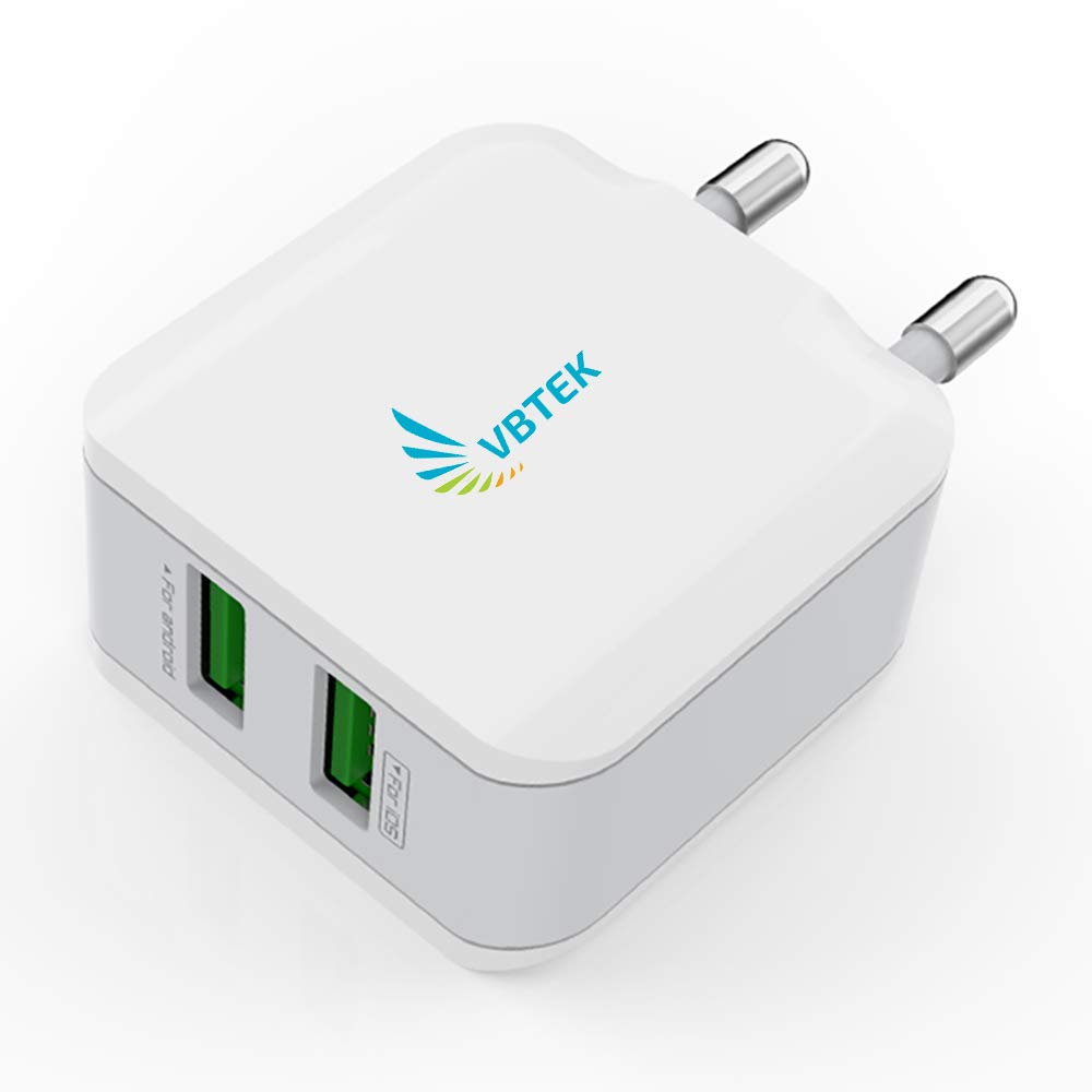 VBTEK Dual Port USB Charger Adapter with 2.4 Amp Power Supply for All Andro...