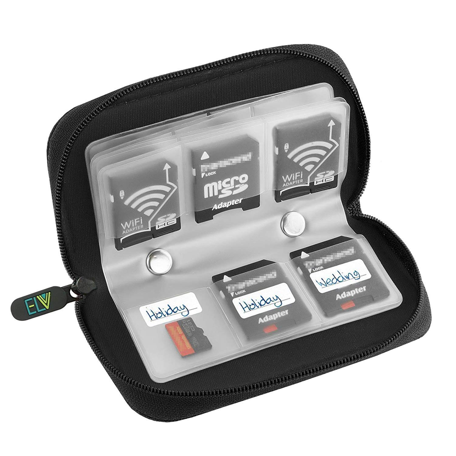 Elv 22 Slots Wallet for SDHC and Micro SD Cards, Jet Black