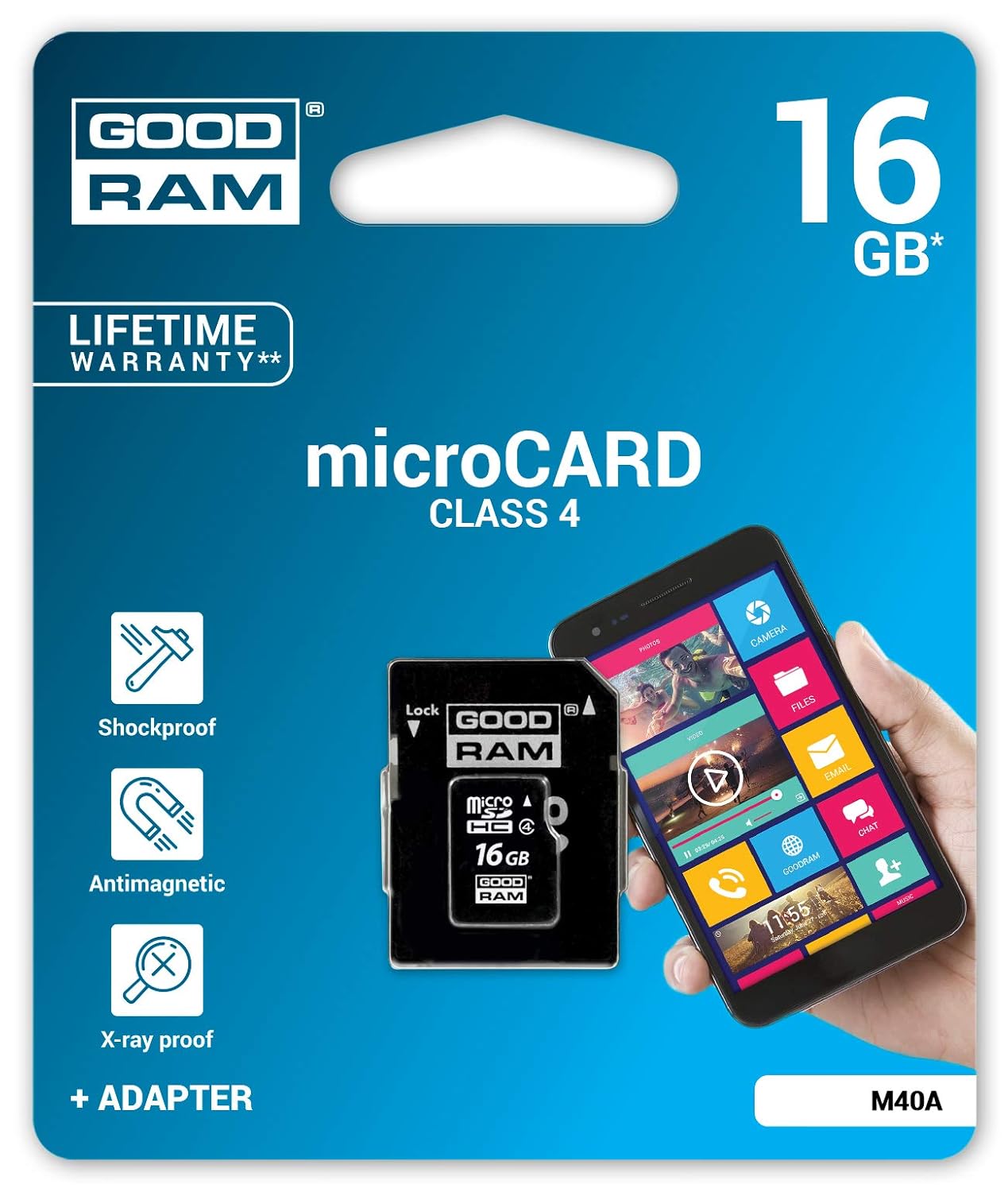 Goodram 16GB Class 4 MicroSD Card with Adapter (M40A-0160R11)