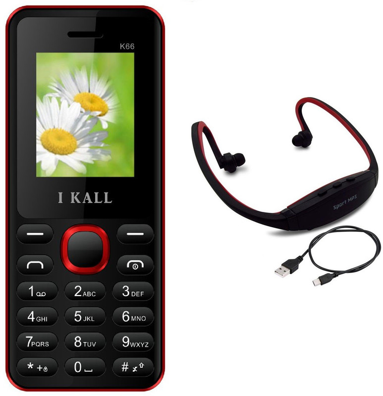 I Kall K66 with MP3/FM Player Neckband(Black & Red)