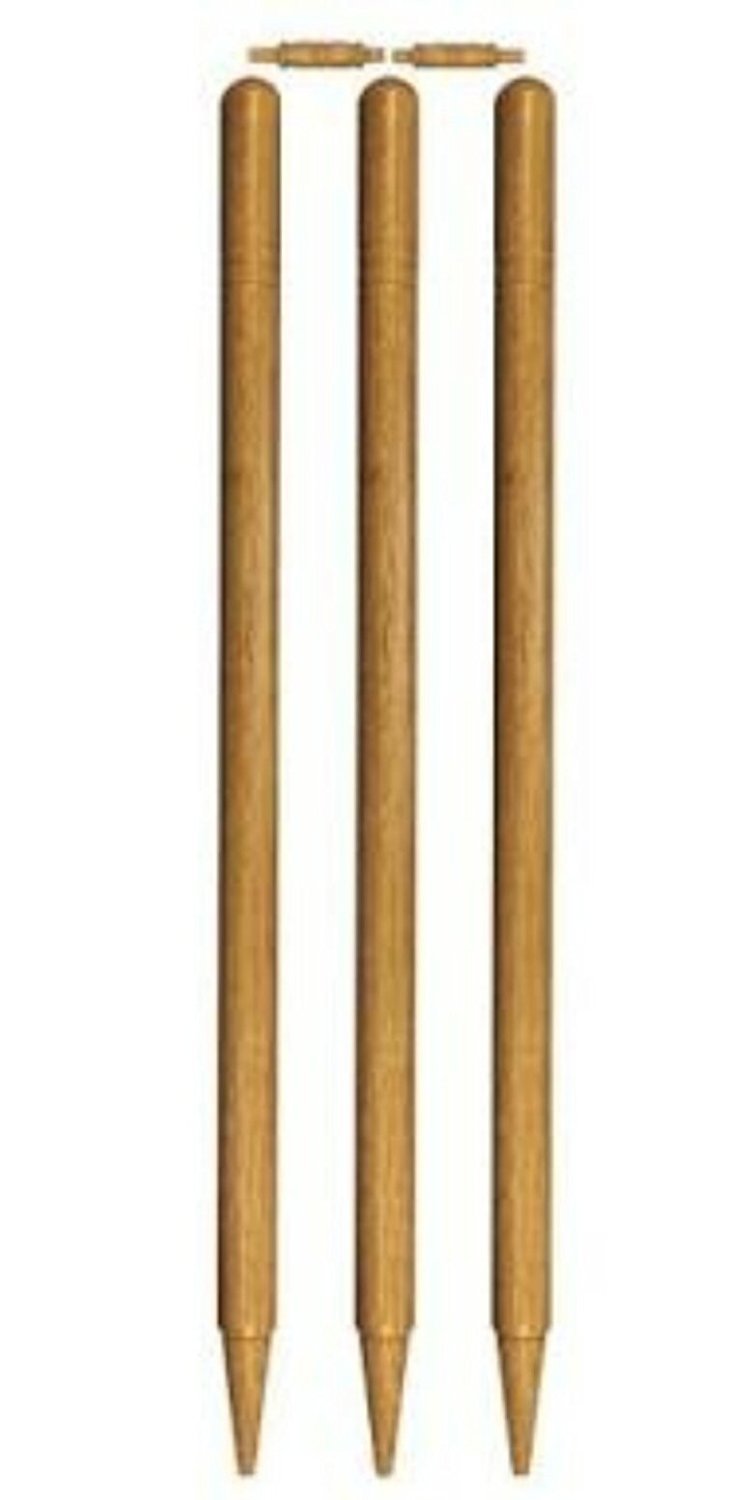 Fine Quality Wood Natural Color Cricket Stumps with Bails by K.P Sports - S...