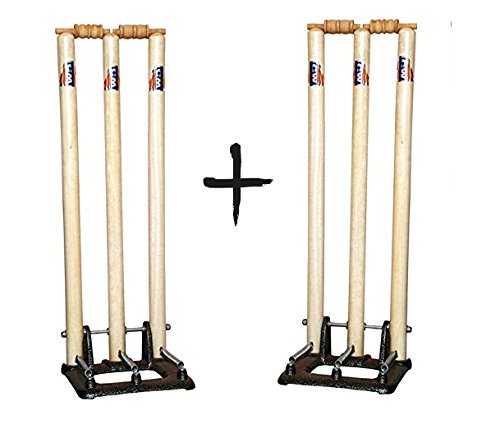 CW Cricket World Complete Cricket Wooden Stumps Set with Spring Stand Base ...