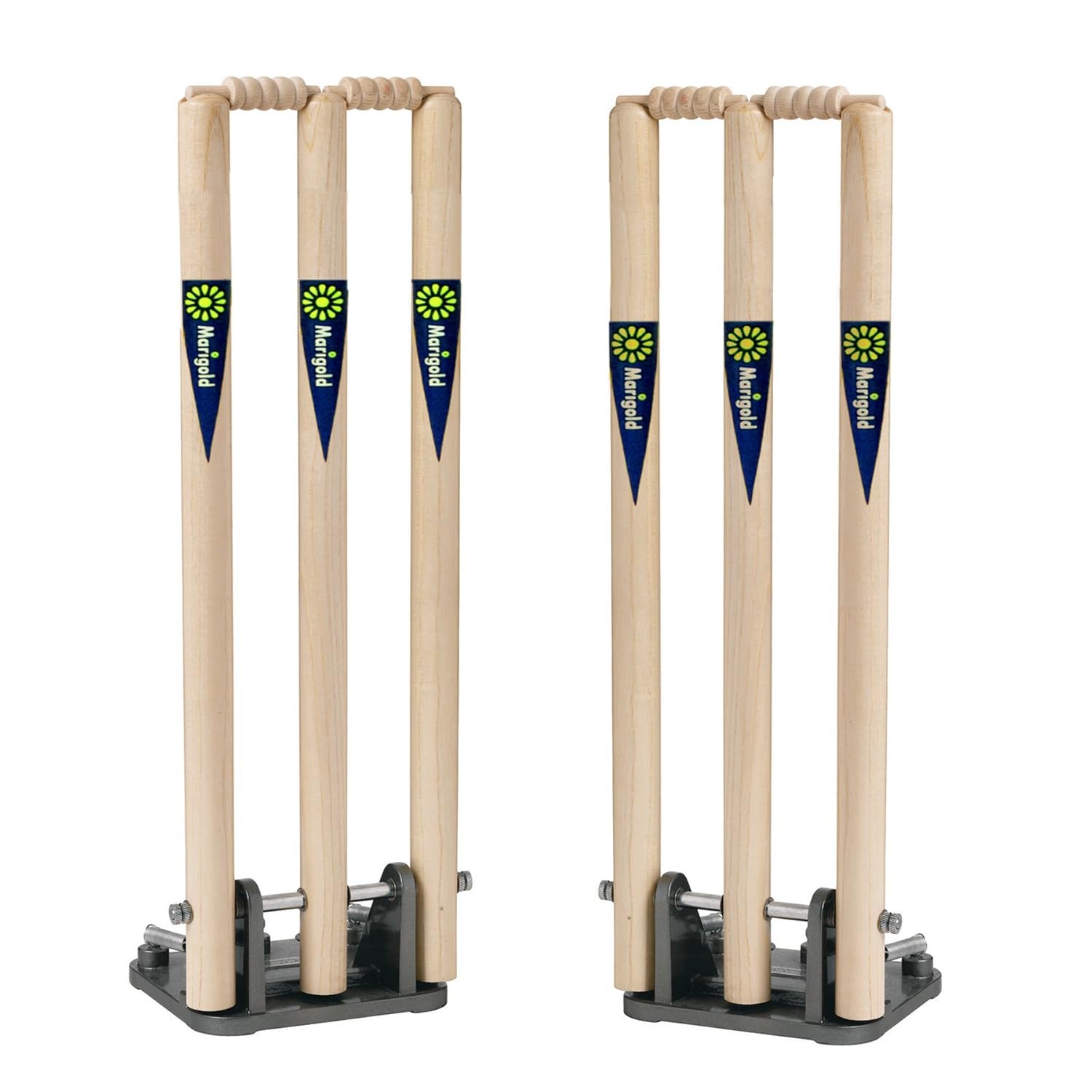 MARIGOLD WOODEN CRICKET SPRING BACK WICKETS SET WITH BAIL WITH HEAVY BASE (...