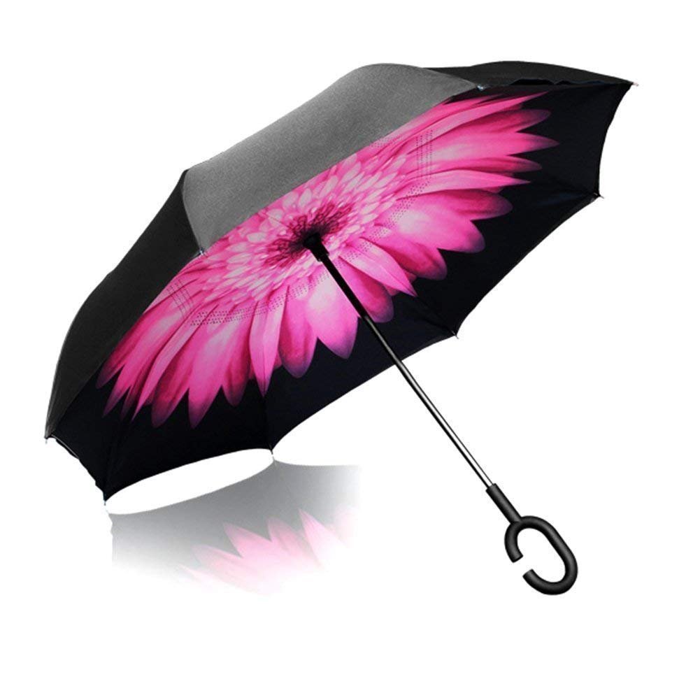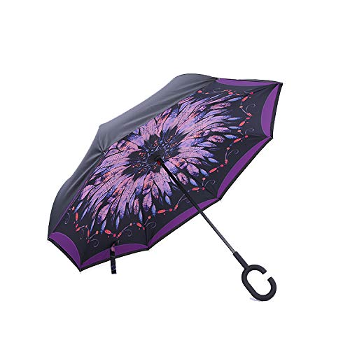 Beldaenova Double Layer Inverted Reversible No Drip Umbrella with C Shape H...