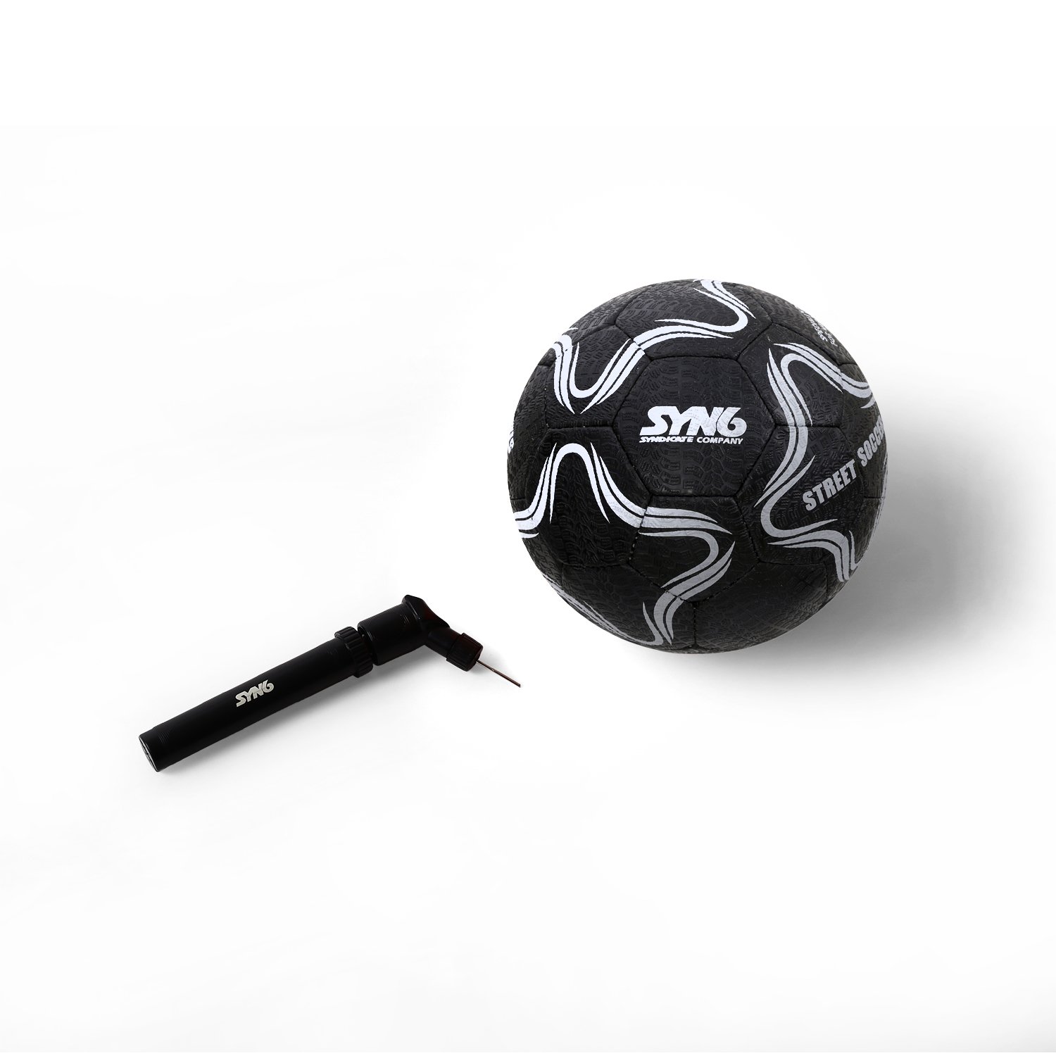 SYN6 Football, Street Soccer Ball Black with Pump, Made with Recycled tyre,...